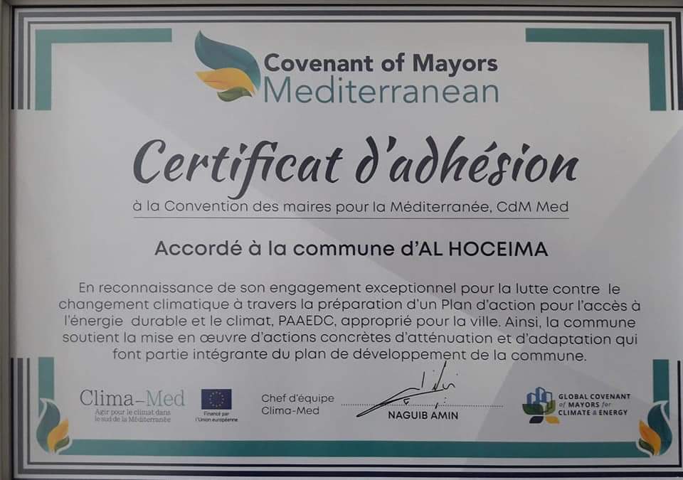 يذكر أن العديد من رؤساء الجماعات في جنوب البحر الأبيض المتوسط أظهروا إلتزاما كبيرا بالانضمام إلى ميثاق رؤساء المدن، وضمنهم رئيس جماعة الحسيمة؛ حيث وقعت أكثر من 122 مدينة على الميثاق.