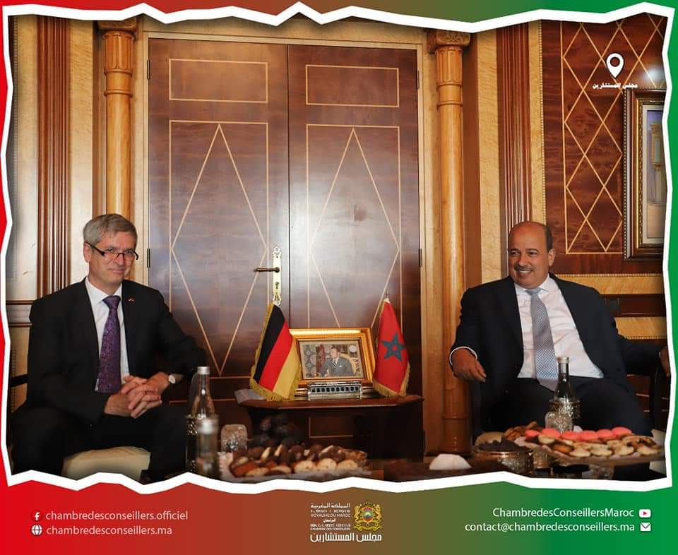 اجرىى السيد النعم ميارةرئيس مجلس المستشارين مباحثات مع السفير الألماني بالرباط همت سبل تعميق التعاون الثنائي وتبادل الرؤى حول عدد من القضايا الإقليمية ذات الاهتمام المشترك.