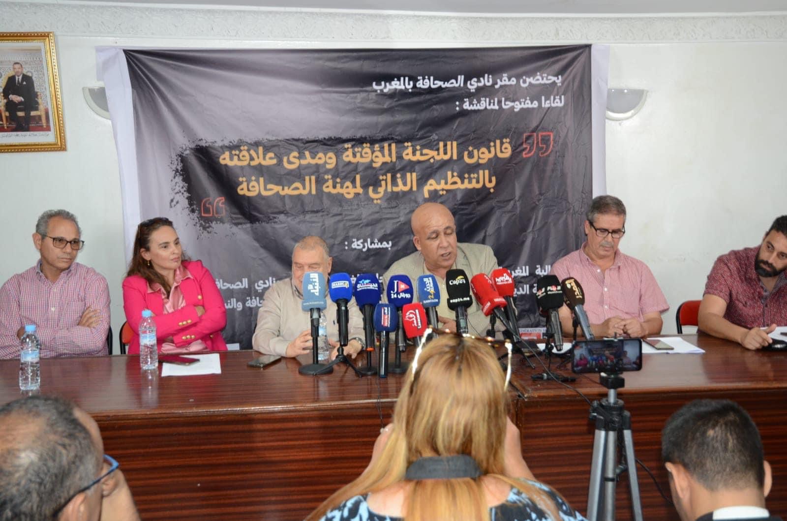استضاف نادي الصحافة بالمغرب يوم الاثنين 29 ماي 2023 لقاءاً صحفياً مفتوحا ضم مجموعة من الصحافيات و الصحافيين المهنيين من مختلف المنابر العمومية والخاصة، و المسؤولين في المنظمات الأكثر تمثيلية للصحافيين والناشرين في قطاع الصحافة والإعلام. وهي: الفيدرالية المغربية لناشري الصحف ( FMEJ )، و الجامعة الوطنية للصحافة والإعلام والإتصال، والنقابة الوطنية للصحافة ومهن الإعلام المنضوين تحت لواء الاتحاد المغربي للشغل ( UMT )، والمنظمة الديمقراطية للعاملين بالشركة الوطنية للإذاعة والتلفزة، والمنظمة الديمقراطية للصحافة ومهن الإعلام المنضوين تحت لواء المنظمة الديمقراطية للشغل ( ODT ). ونادي الصحافة بالمغرب ( CPM ).