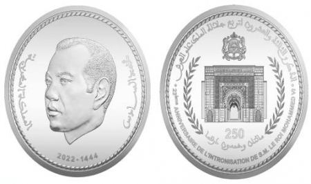 أعلن بنك المغرب عن طرح عملة فضية تذكارية جديدة من فئة 250 درهما، تخليدا للذكرى الرابعة والعشرين لتولي صاحب الجلالة الملك محمد السادس مقاليد الحكم.